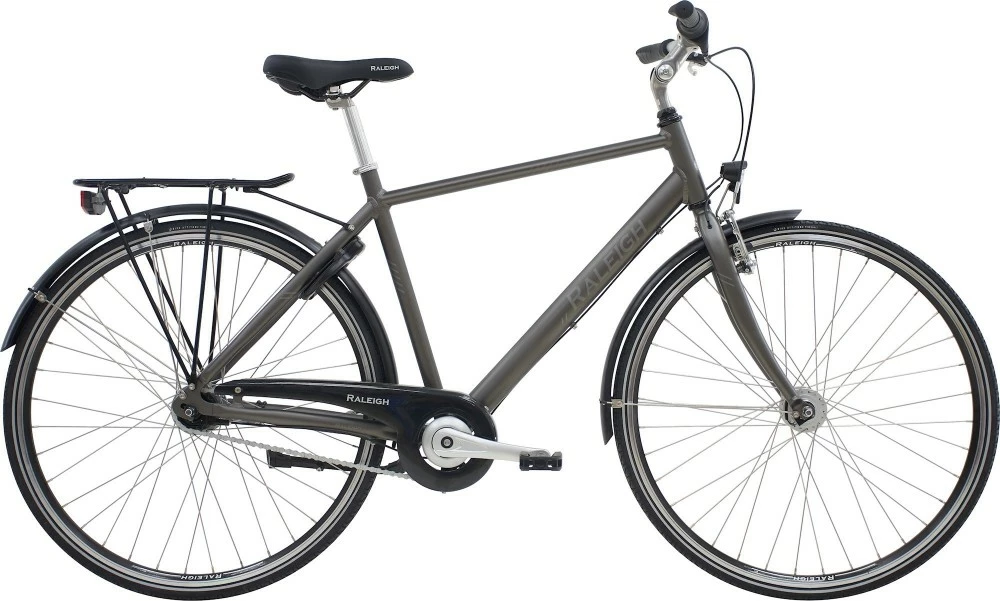 Der medfølger dynamo forlygte med batteri baglygte og cyklen er monteret Bike Attitude 700Cx32 Kevlar dæk samt sorte skiftegreb og sort affjedret Raleigh sadel.